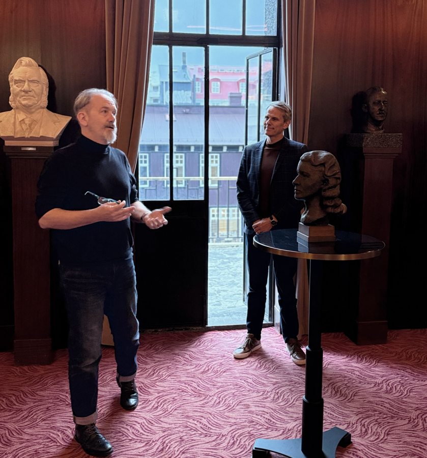 Styttunni af Önnu Borg verður fundinn staður í Þjóðleikhúsinu í gestarými hússins, en hún er glæsileg eins og meðfylgjandi myndir bera með sér. Nokkrir ættingjar Richards og Önnu Borg komu saman á Kristalsal Þjóðleikhússins við þetta tækifæri.